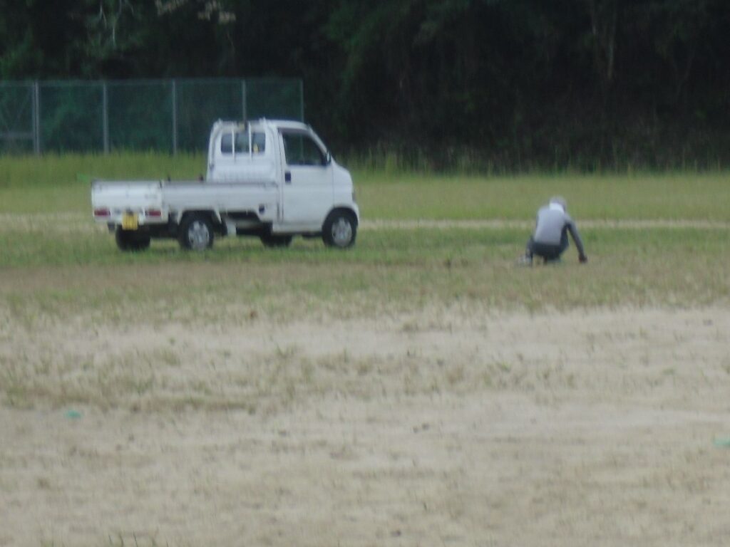 きみっこ応援団の代表が、グラウンドの草引きをしてくださっています。