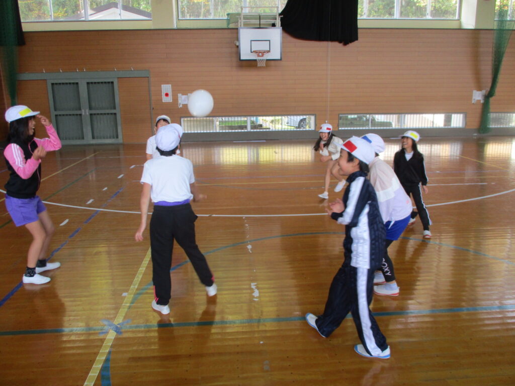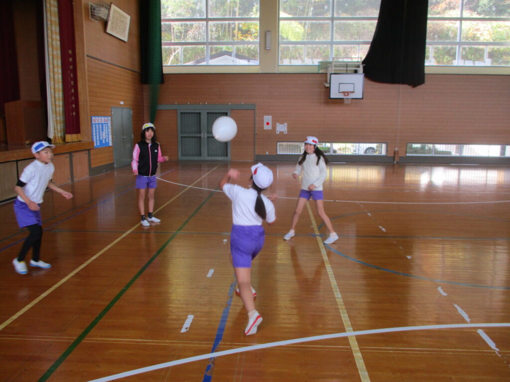 4年生 体育「キャッチバレーボール」に向けて 学年・学級の様子 2025.11.21 体育で行う「キャッチバレーボール」という競技に向けて、風船を使って練習をしました。最初は近くに風船が来ても人任せにしたり、お見合いが起きてしまったりしてよく風船を落としていました。話し合いや練習を通して、風船を落とさないために「○○さん!」と名前を呼んだり、「僕がいく!」と声を出したりして上手にラリーを続けられるようになりました。今後行う「キャッチバレーボール」の授業が楽しみです。