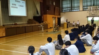 京都府城陽警察署交通課の方を講師としてお招きし、全校生徒を対象に交通安全教室を実施しました。