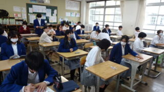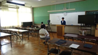 本日も生徒会選挙のPR放送をZOOMで各教室に放映しました。今回は副会長と庶務の候補者です。来週は1年生です!
