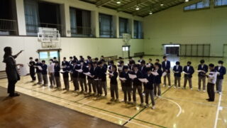 本日で義務教育最後の体育の授業です。バドミントン、ソフトテニス、サッカーの3種目を実施しています。