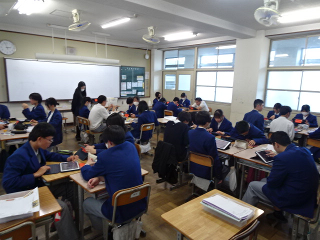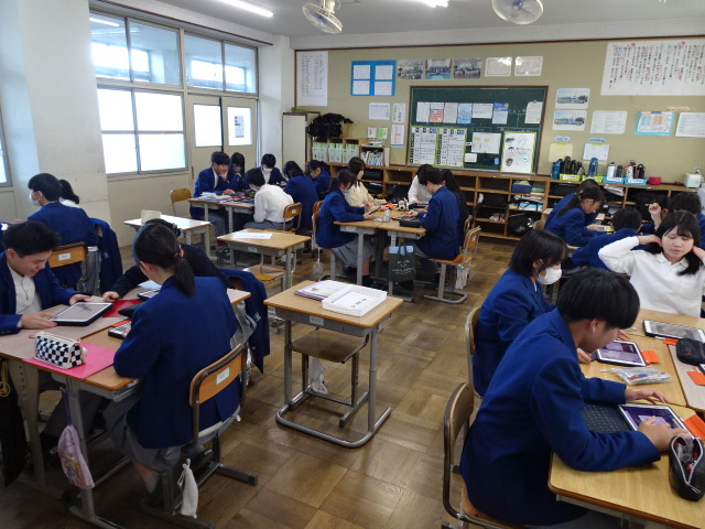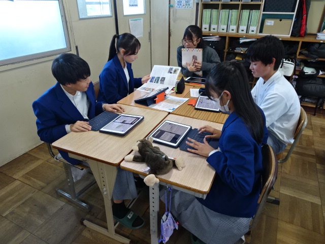 2年生は校外学習の午前中に京都市内の人権ゆかりの地を訪ね、それぞれのテーマに沿った学習をしてきました。本日からその成果をプレゼンテーションするための資料を作成しています。当日いただいた資料だけでなく、許可を得て撮影した写真などをもとに作っていきます。