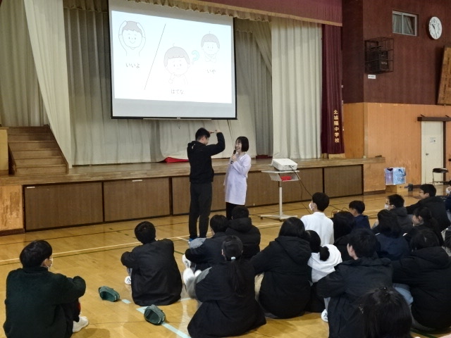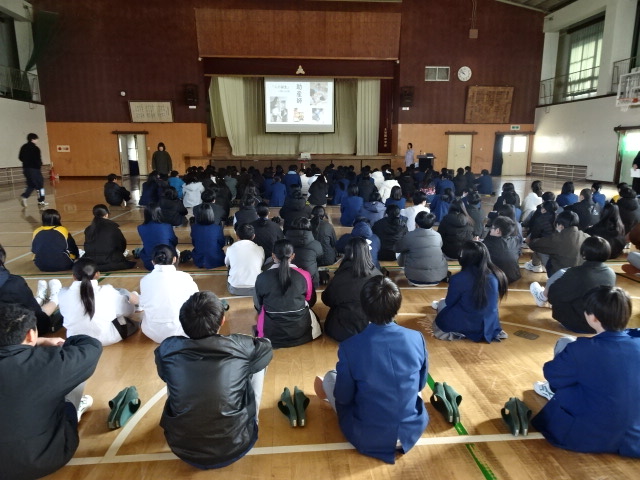 本日2~3校時に助産師を講師に招いて「生と性の学習」を実施しました。本校では2・3年生を対象に隔年で当該授業と性の多様性の授業を計画的に実施しているので、卒業までに2つのテーマについて学習することができるようになっています。普段は小学生~高校生等にも講演をされている方なので、とても分かりやすく奥の深い授業でした。