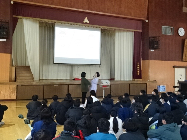 学校生活本日2~3校時に助産師を講師に招いて「生と性の学習」を実施しました。本校では2・3年生を対象に隔年で当該授業と性の多様性の授業を計画的に実施しているので、卒業までに2つのテーマについて学習することができるようになっています。普段は小学生~高校生等にも講演をされている方なので、とても分かりやすく奥の深い授業でした。