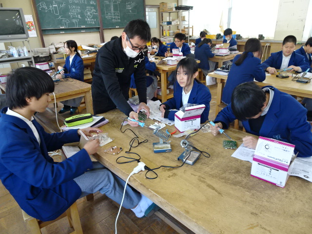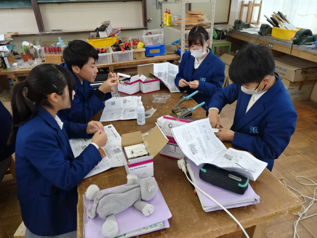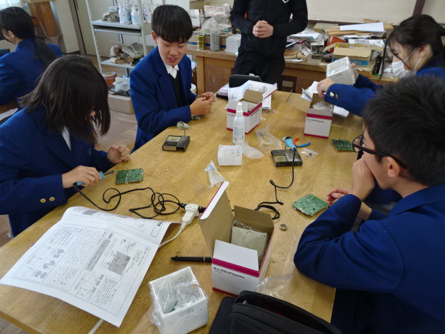2年 ラジオ製作📻 学校生活 Twitter Facebook はてブ Pocket LINE コピー 2025.12.17 2年生技術の授業では現在「電気回路の設計・製作」の単元を学習中で、ラジオを製作しています。現段階では、はんだ付けの練習をしていますが、これから本格的にラジオ作りに入っていくようです。 閲覧数: 31