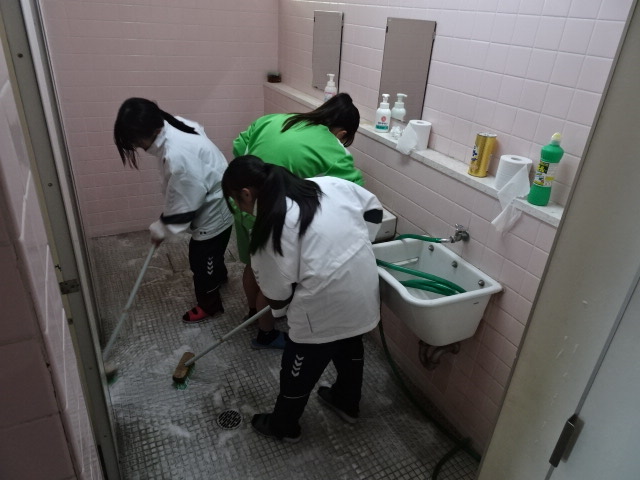 部活動クリスマスイブだというのに、バレー部が体育館を大掃除してくれています。体育倉庫の中を全部出してきれいに整理整頓、トイレも丁寧にブラシがけ、玄関もメラミンスポンジできれいにしてくれています。公共施設に自動清掃機能はついていません。誰かがきれいにしてくれています。感謝の気持ちを忘れずに…。
