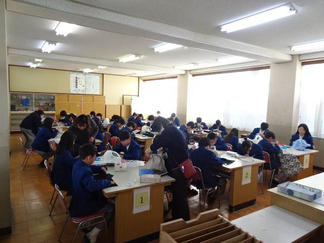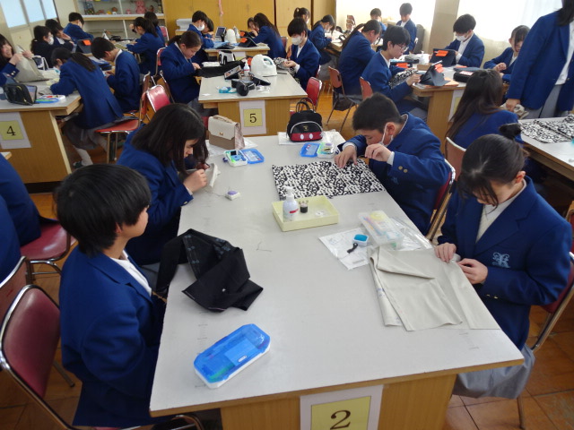 1年家庭科 裁縫 学校生活 Twitter Facebook はてブ Pocket LINE コピー 2026.01.21 1年生家庭科の授業では2学期に引き続き、ファイルカバー製作を行っています。今日の課題はスナップボタン付けでしたが、教員3人がかりでもかなり苦戦していました。みんなそろそろ針に糸を通せるようになろう…(笑) 閲覧数: 44