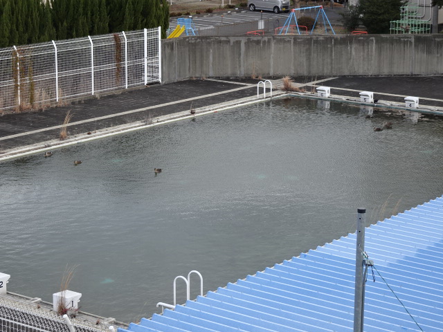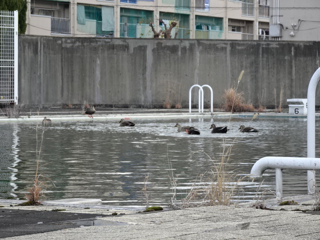最近寒波のせいか、本校公認ペットの🦆が家出をしていましたが、今日久しぶりに帰ってきてました。8羽が優雅にプールを泳ぎながら、たまに水中に顔を突っ込んでエサらしきものをあさっていました。その横にはやまびこ農園のネギが立派に育っているので、つい脳裏に鍋のメニューが思い浮かんでしまいました…(笑)