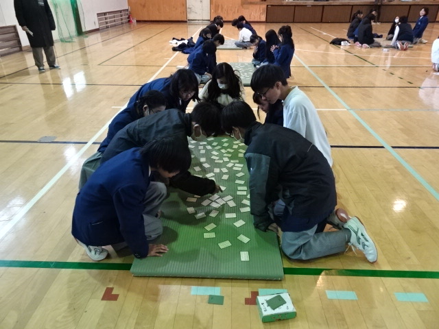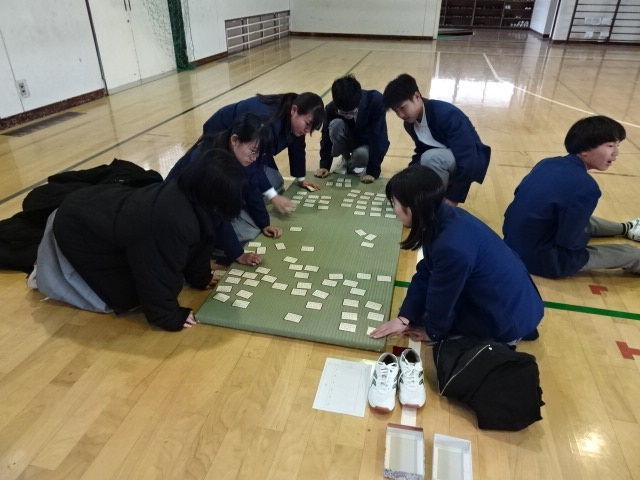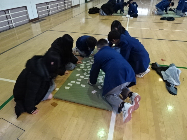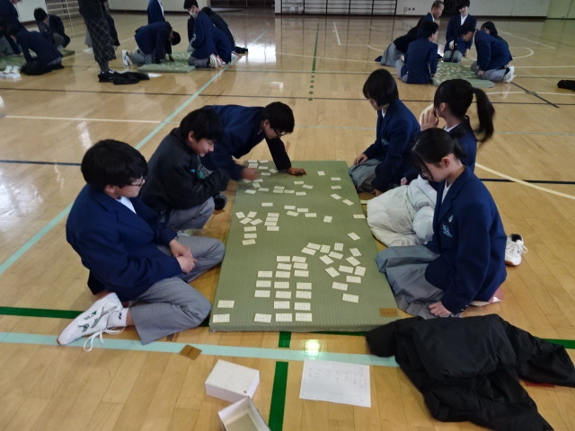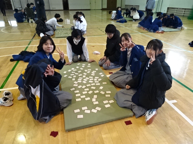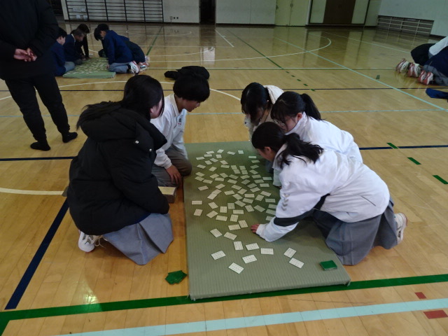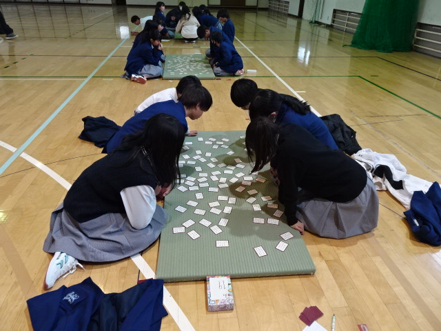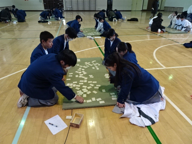 1年百人一首大会 学校生活 Twitter Facebook はてブ Pocket LINE コピー 2026.01.30 本日1年生は5~6校時にかけて「百人一首大会」を開催しました。外では雪がチラつく中、寒さに耐えながらの戦いでした。 閲覧数: 13
