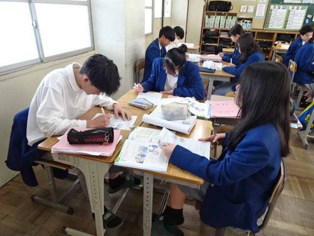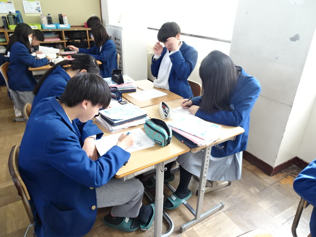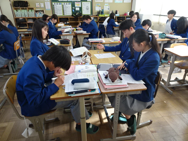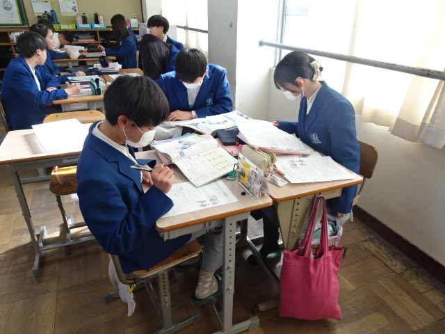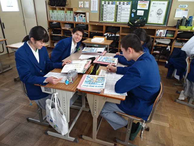2年英語の授業 学校生活 Twitter Facebook はてブ Pocket LINE コピー 2026.02.03 2年生英語の授業風景です。今日は取材に行ったところ、学習班で問題をやっていました。それぞれ班の中で分からないところをお互いに教え合いながら解いていました。 閲覧数: 66