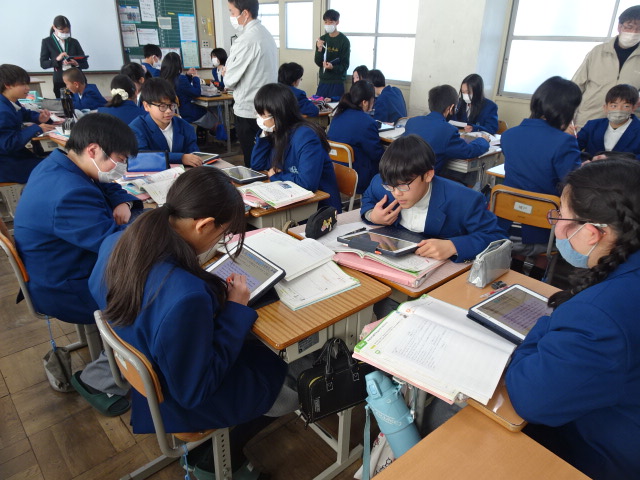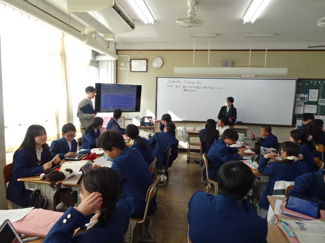 1年英語 研究授業 学校生活 Twitter Facebook はてブ Pocket LINE コピー 2026.02.04 本日1年英語の授業は研究授業でした。13名もの教職員が参観する中で、「冬休みの様子をはがきで伝えよう」という学習を行いました。みんな冬休みに何をしたかを思いだし、それを英語にして情報整理から始めていました。 閲覧数: 60