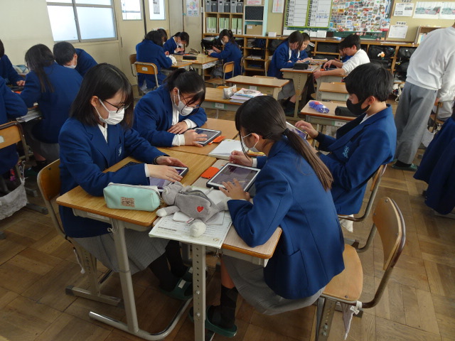 2年学活 修学旅行の取組 学校生活 Twitter Facebook はてブ Pocket LINE コピー 2026.02.04 2年生学活の授業では修学旅行に向けての取組を行っています。金沢市内班別行動で行く場所についてプレゼンテーションを行うということで、本日はその最終調整でした。 閲覧数: 71