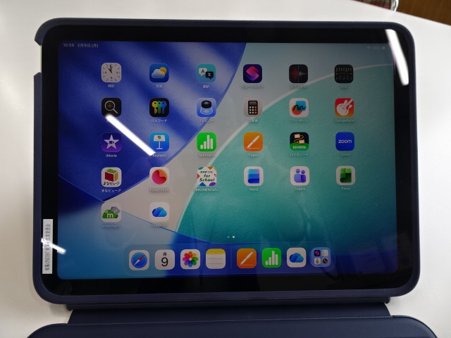 現在使用中のiPad第7世代に代わり、新たに第11世代が3月に導入されます。先行して教職員機が本日到着しました。今までよりもディスプレイは10.2インチ→10.9インチにサイズアップ、コネクタはUSB-Cに代わり、容量は32GB→128GBと4倍、CPUもA16 Bonicにアップグレード!
