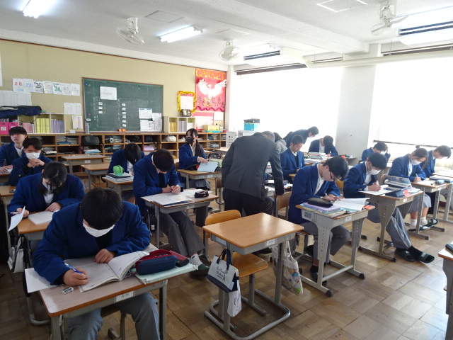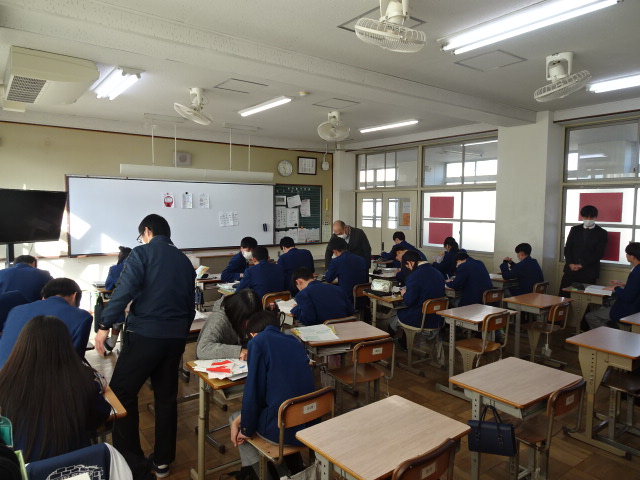 学校生活本日から京都私学入試が始まります。本校からも多くの生徒が私学受験に行っているため、今日は3年生全員が1教室に楽々収まってしまうコンパクト授業を実施しています。学年の先生たちも総動員で入試過去問や前期選抜に向けての作文指導をしています。