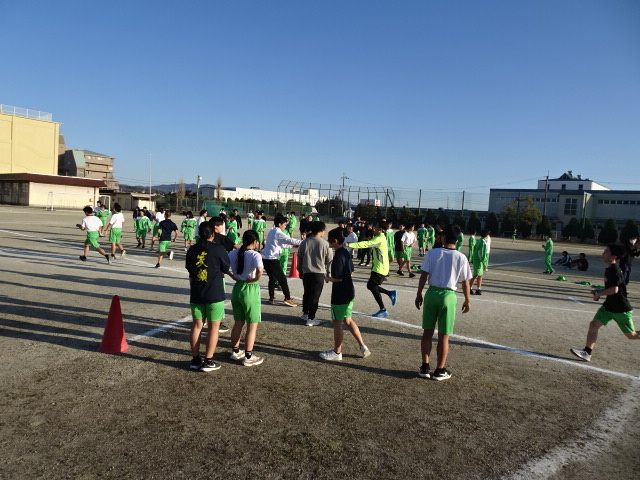 結果よりも、自主トレの要素をもった駅伝の取組に、それぞれの別の競技の選手たちが体力向上のために主体的にかつ楽しみながら参加していたのが素晴らしかったです。この取組は1月15日から、およそ1カ月間にもわたり行われましたが、冬の朝の誘惑にも負けず参加できたみなさんは、体力面だけでなく精神面も大きく成長しているはずです! 春季大会まであと2か月がんばろう!
