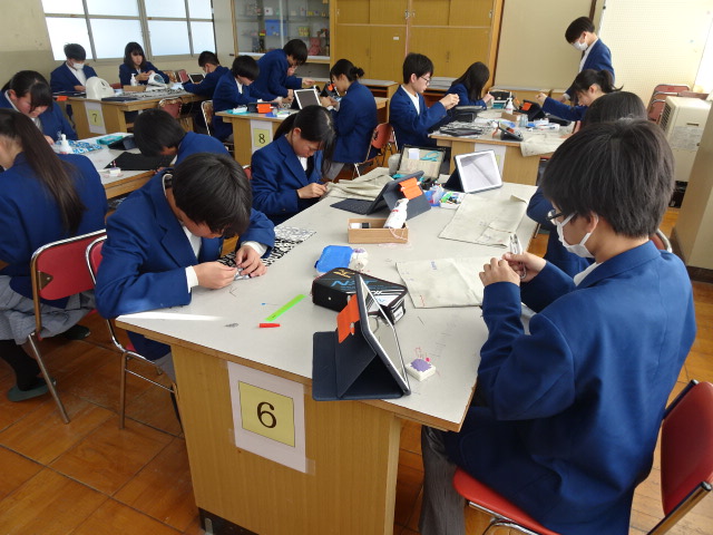 学校生活1年生家庭科の授業で長らく続いているファイルカバーづくりも、ようやく仕上がりに向かいつつあります。カバーの形になってきている人もいれば、もうちょっと時間のかかりそうな人も…。大人になってもボタン付けなど裁縫をする機会は結構あるので、しっかりと習得しておきましょう。