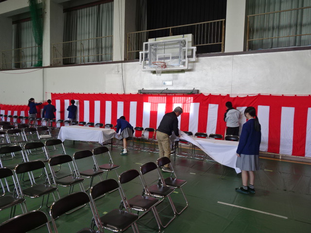 卒業式メイキング①📸 学校生活 Twitter Facebook はてブ Pocket LINE コピー 2026.03.12 本日昼からは卒業式の準備でした。2年生は体育館、1年生は3年教室の装飾を行いました。みんな心をこめて掃除や準備をしたので、明日はきっと素敵な式になるはずです。 閲覧数: 246