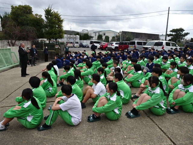 校長講話にもありましたが、今から8年前の2018年6月18日7時58分頃に「大阪府北部地震」(城陽市震度5弱)が発生したときは、本校生徒がちょうど登校途中で、教室内にいる生徒、昇降口にいる生徒、通学路を歩いている生徒等、様々でしたが、当校後にグラウンドに避難させたのを覚えています。現在の本校校長・教頭が、生徒指導主事・教務主任コンビだった時で、とっさの判断の連続を迫られた記憶がよみがえってきました。
