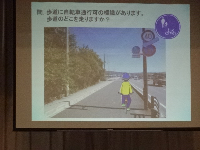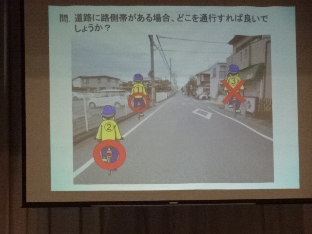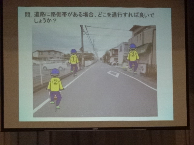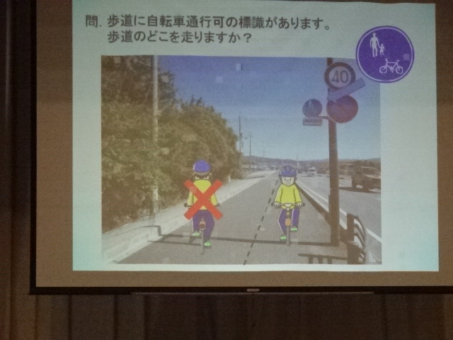 交通教室では、パワーポイントや実物の自転車を使用しながら、自転車乗車時の注意点や交通ルール、自転車事故等について学習しました。自転車は、身近な乗り物であり、多くの人が利用する便利なものではありますが、ひとたび事故が起これば、大きな怪我につながる恐れもあります。