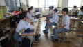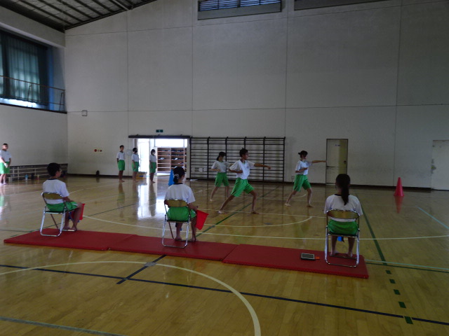 本日の2年生保健体育の授業は空手道の団体形競技プレ試合を行いました。来週の本戦に向けて実際のコートと同じ広さで、審判も自分達でローテーションしながら体験しました。プレ試合後はそれぞれ撮影していた動画で振り返りを行い、本戦に向けて最終調整もしました。