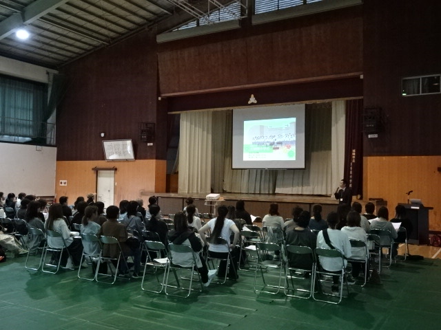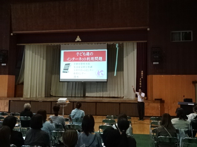 来年度の入学生保護者を対象に学校説明会を実施しました。動画をまじえて学校生活の1日を見ていただいたり、京都府警南部サポートセンターの方々を講師に招いて保護者向けにSNS講座を開くなどしました。現職の警察官の講師から近隣の中学生に起こっているSNSを原因とした犯罪等について、そのリスクや対処法について丁寧に説明していただきました。