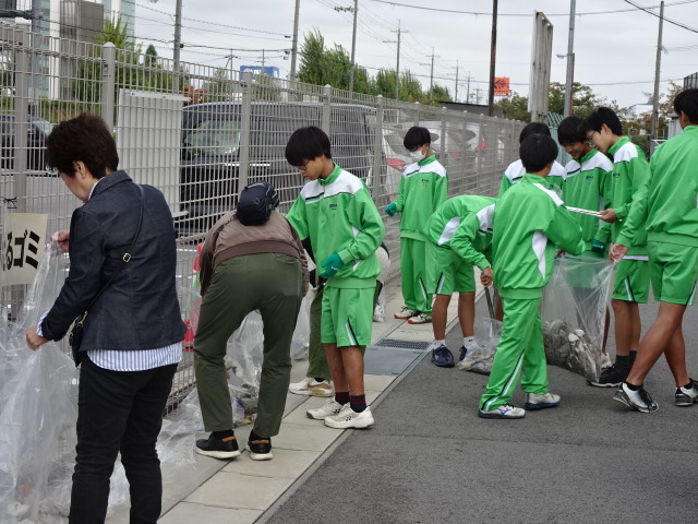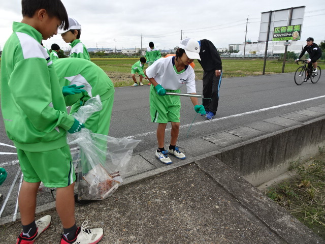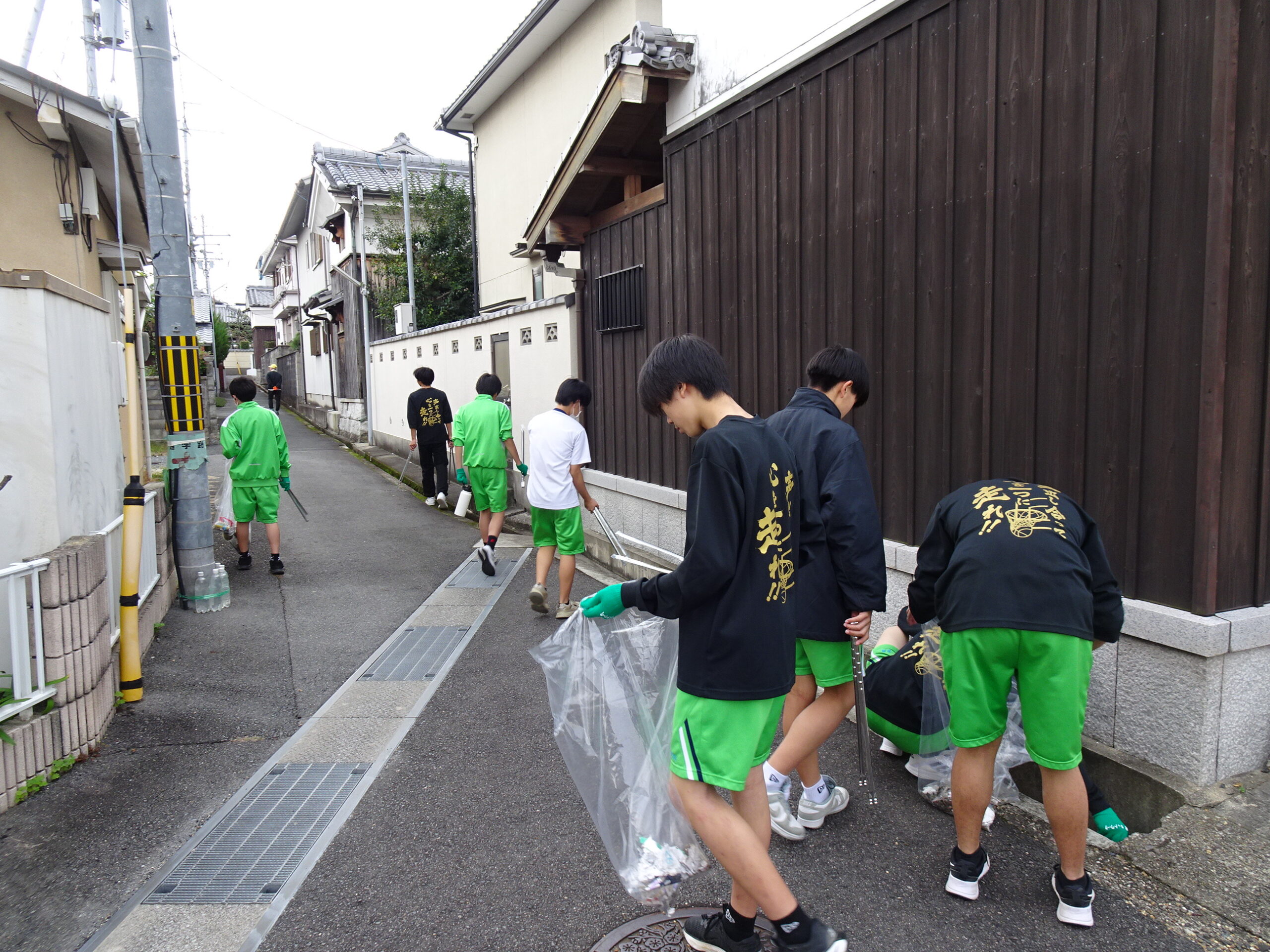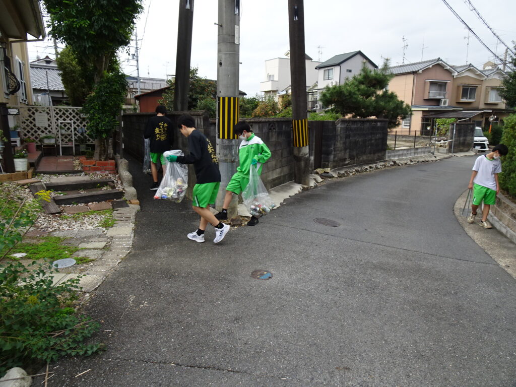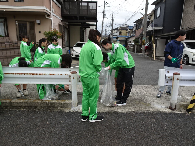 本日曇り空でクリーン運動にはちょうどいい天候でした。この取組は「北城陽ブロック学校・地域連携推進事業」通称「絆ネットワーク」として、北城陽中学校、古川小学校、久津川小学校の3校に加えて、地域の方々の協力を得て成り立っています。その事業の一環として、古川と久津川ブロックに分かれて、部活動ごとに校区内のゴミ拾いをしてもらいました。みなさんご苦労様でした。