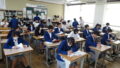 2年生は現在英語の授業でSpeaking Testを実施しています。避難evacuationするときに避難袋に何を追加で入れるかを問われて回答する会話のやりとりです。この学年は来年度、3年生になってから全国学力学習状況調査にSpeaking Testが加わります。結構難しいので、しっかりと授業内で学習しておきましょう。