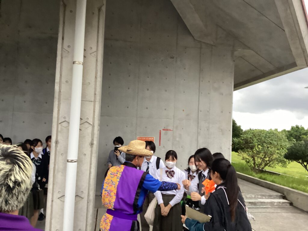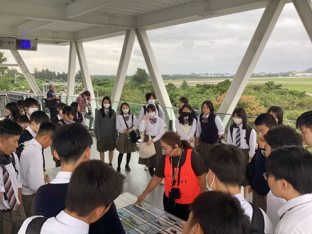 那覇空港到着の後、道の駅かでなにて嘉手納基地から戦闘機や軍用飛行機が間近に飛び立つ様子や基地の歴史に関する展示を見学し、平和について考える時間を持つことができました。