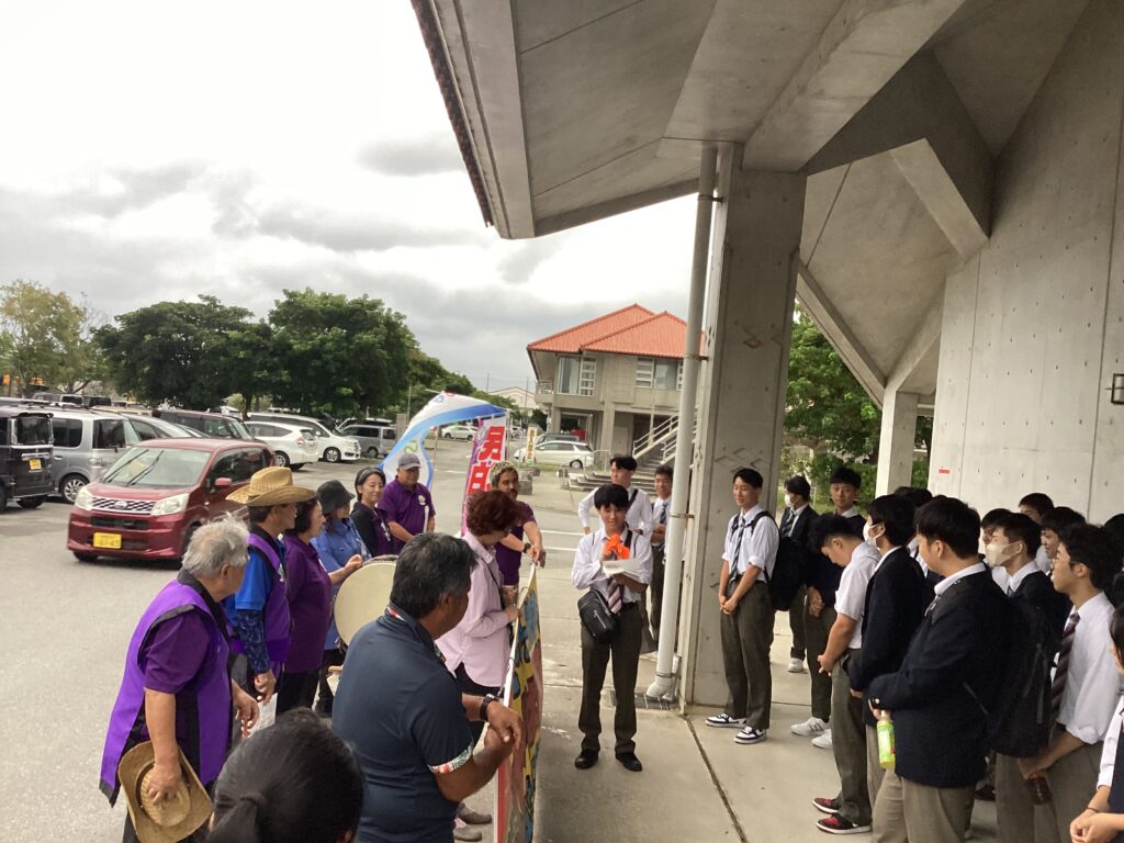 読谷村へ移動し、民泊のホストファミリーの皆さんの歓迎を受けた入村式の後、それぞれのグループごとにお世話になる民家に移動し、民泊体験が始まりました。明日のお昼過ぎまでそれぞれの民家で様々な体験をして過ごします。