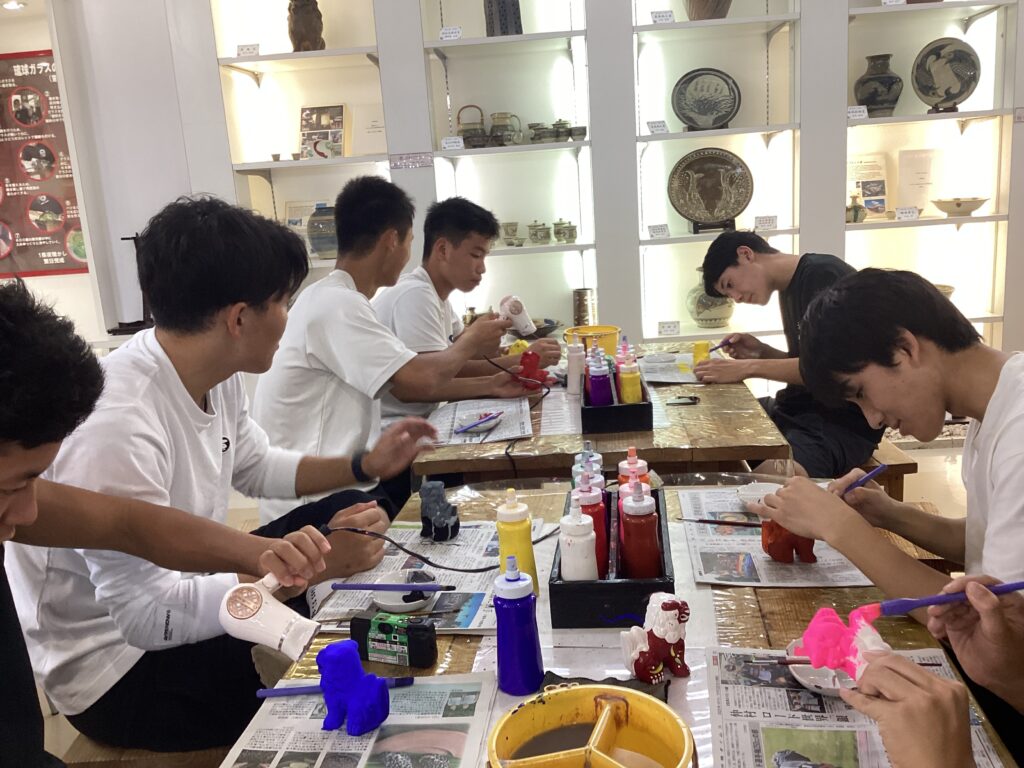 令和7年度 研修旅行【2日目】 学校行事など 2025.10.29 10月29日(火) 民泊のホストファミリーのそれぞれのお宅から、元気に戻ってきました。温かいおもてなしを通して沖縄の生活文化を体験させていただいたようです。 海の見える広場で研修旅行委員企画のレクリエーション「ドッヂビー」を楽しんだ後、シイサーの色付け体験に挑戦しました。仕上げまで真剣に取り組み、オリジナルシーサーができあがりました。 夕食はブュッフェスタイルでおいしくいただきました。食事の最後にはサプライズで沖縄民謡のショーが始まり、最後は全員で輪になって踊って1日を終えました。 Post Views: 33