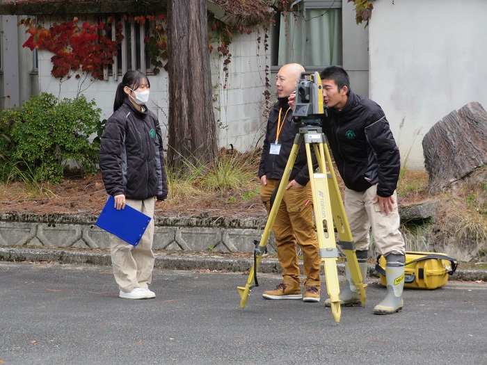 2年生特別実習 京都フォレスト科 2025.11.27 11月18日(火)京都フォレスト科2年生対象に毎年恒例となりました、京都土地家屋調査士会による出前授業が行われました。最新の測量機器の扱いやコンピューターシステムによる測量方法を学びました。普段の実習とは違い実際の現場で使用されている機器を使用することで、現場での作業の動きを学ぶことができました。最後には簡単な競技もあり充実した時間を過ごすことができました。 Post Views: 19