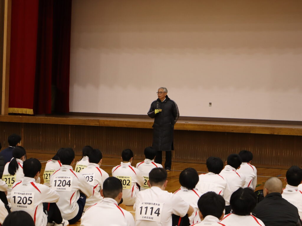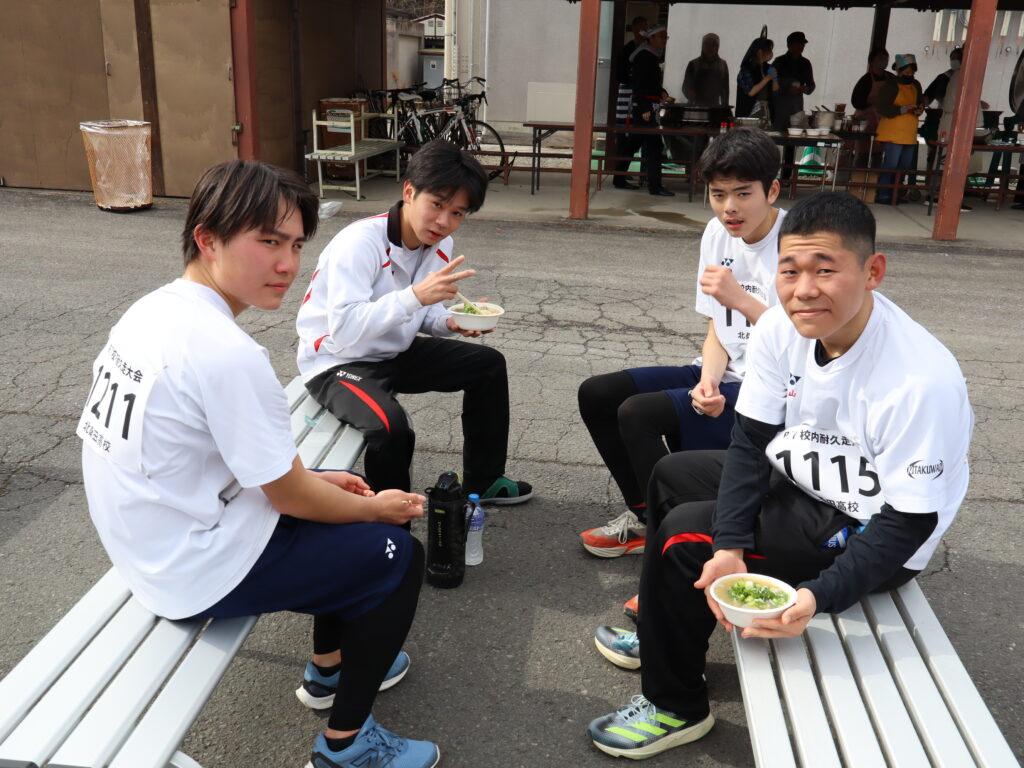 耐久走大会を実施しました。コース上の雪も溶け、晴天の中での実施となりました。本校の耐久走大会は体育での長距離走の授業のまとめとして、自己の体力や精神力を試し、忍耐力を養うことを目的に毎年、実施しています。
