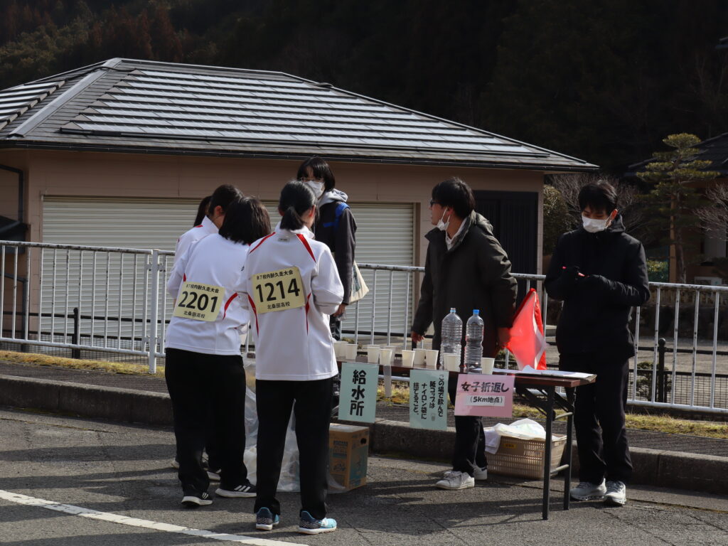 男子は本校→五本松→熊田→下熊田→明石で折り返す、15kmのコースに挑戦しました。女子は本校→五本松→熊田→下熊田の折り返す、10kmのコースです。歩行コースを含めて、1,2年生が参加しました。今年は参加生徒全員が制限目標タイムを切ってゴールすることができました。またコース上では地域の方々より大きな声援を頂きました。