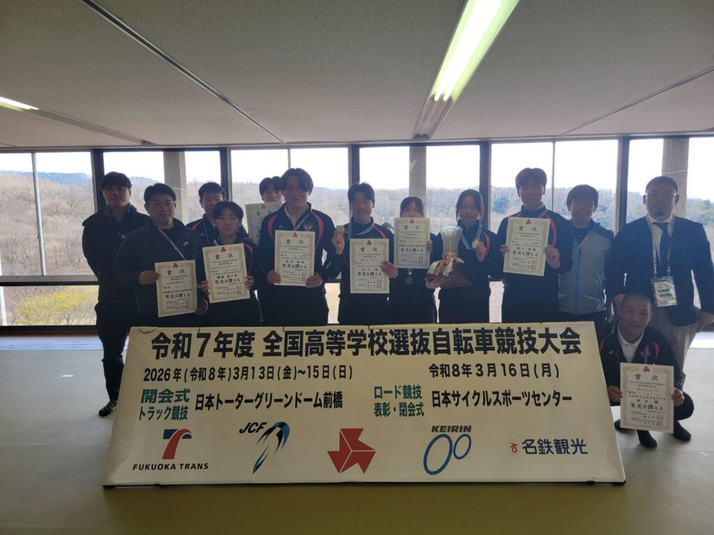 来年度の令和8年度は夏に京都府でインターハイが開催されます。今回の選抜自転車競技大会で得た経験と反省を活かして、地元美山で開催されるロードレースでの男女上位入賞、団体追い抜きの連覇、トラック種目の上位入賞に向けて、練習を積み重ねていきたいと思います。4月からは新入生を迎え、チームの規模も大きくなります。様々な地域から集まり、互いに競い合い、磨き合い、成長していく、北桑田高校の自転車競技部の強みです。その強みを活かして、4月からも練習に励んでいきますので、保護者の皆さま、地域の皆さま、関係の皆さま等々、御理解・御協力を賜りますとともに引き続き、選手たちへの応援をよろしくお願します。
