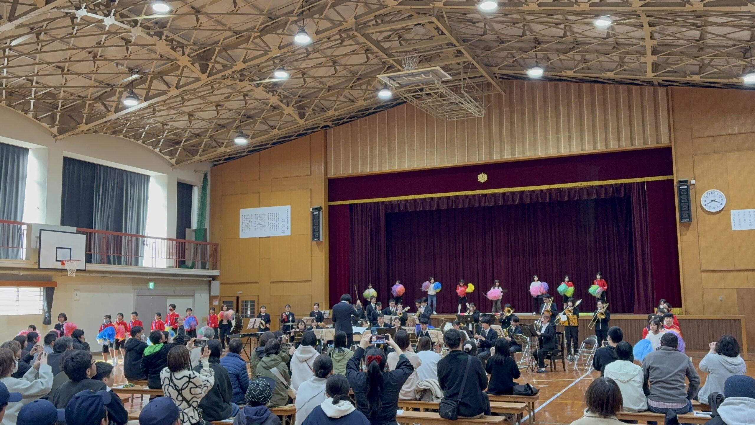 令和7年度京北定期演奏会 吹奏楽部 2026.03.30 令和8年3月21日(土)に、京北小中学校で、京北小中学校音楽部、京北まちの音楽隊、森の吹奏楽団と合同で定期演奏会を行いました。 3年生にとって最後の演奏会となりました。 毎年多くの地域の方にご来場いただき、ありがとうございます。 これからも吹奏楽部の活動を温かく見守っていただけますと幸いです。 Post Views: 9