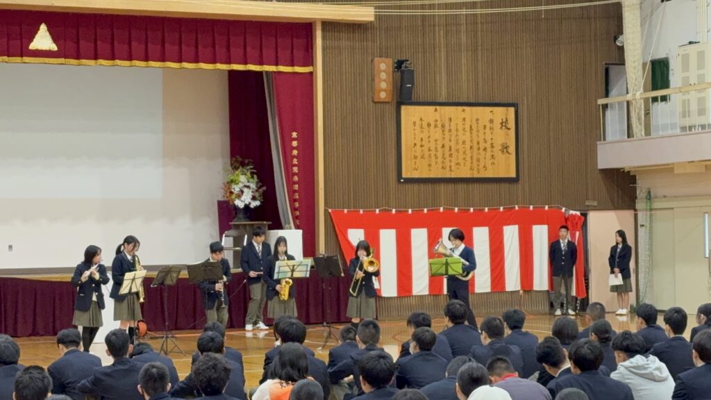 令和8年度が始まります Kitakuwada Style 2026.04.13 目次 始業式部活動紹介部活動体験 始業式 4月8日(水) 令和8年度始業式が行われ、新年度が始まりました。 生徒達は新たな目標を定め、気持ちを新たに学校生活をスタートさせています。 部活動紹介 4月11日(金) 全校生徒が参加しての部活動紹介が行われました。 北桑田高校では、運動系の陸上競技部・硬式野球部・自転車競技部・剣道部・女子バレーボール部・ワンダーフォーゲル部・スポーツ射撃部、文化系の吹奏楽部が活動しています。 部活動体験 部活動紹介の後、午後からは多くの新入生が気になる部活動の見学や体験に参加しました。 Post Views: 31