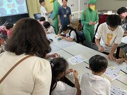 2日目の初となるワークショップでは、午前に「いきものカード」を使用した生物部オリジナルカードゲームを行い、子どもたちにゲームを通して川のいきものや水質について楽しく学んでもらうことができました。午後は、「プラナリアのオリジナルストラップを作ろう」と題し、生物部がいま研究を進めつつあるプラナリアについて紹介し、樹脂粘土で子どもたちが様々な形のプラナリアを形作り、興味を持ってもらいました。