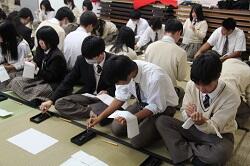 第2回となる、10月27日(月)は丁寧に添削していただいた和歌を毛筆で清書し、「披講(ひこう)」の作法について学びました。次回はいよいよ清凉寺の大方丈にて、短冊に清書し、本格的な和歌の披講を体験させていただきます。