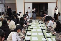 第1回目、冷泉流の和歌について教えていただき、「月」という題で生徒一人ひとりが自作の和歌を詠みました。