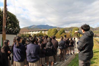 1年生の地理総合の授業と、2-2の地理探究の授業において、北嵯峨高校の立地や地形の特徴について学ぶフィールドワークを行いました。