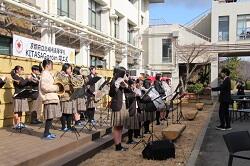 1月30日(金)の昼休み、KITASAGarden(キタサガーデン)の竣工式が執り行われました。当日は、同窓会長、同窓会事務局長、PTA会長、校長、前校長、生徒会長によるテープカットが行われ、同時に吹奏楽部によるオリジナルファンファーレが演奏されるなど、華やかな幕開けとなりました。