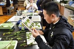 毎年、3年生理科の生物では、有栖川沿いに咲いている草花を採取し、その草花に何という名前が付けられているかを調べる実験実習を行っています。