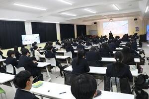 この春、大学や看護学校等に進学する卒業生6名が、自身の合格体験や勉強方法などを、1、2年生の前で語りました。