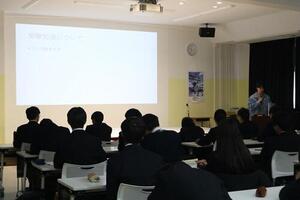 「大学・短大」「専門学校」「就職」「看護・医療」の4つの分野に分かれて、2年生最後の進路分野別学習会を実施しました。希望進路に進むための心構えや今後のスケジュールなど、本校教員から説明を受けました。また、「就職」分野では、木津川市商工会より企業の方が来校され、講演していただきました。