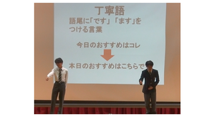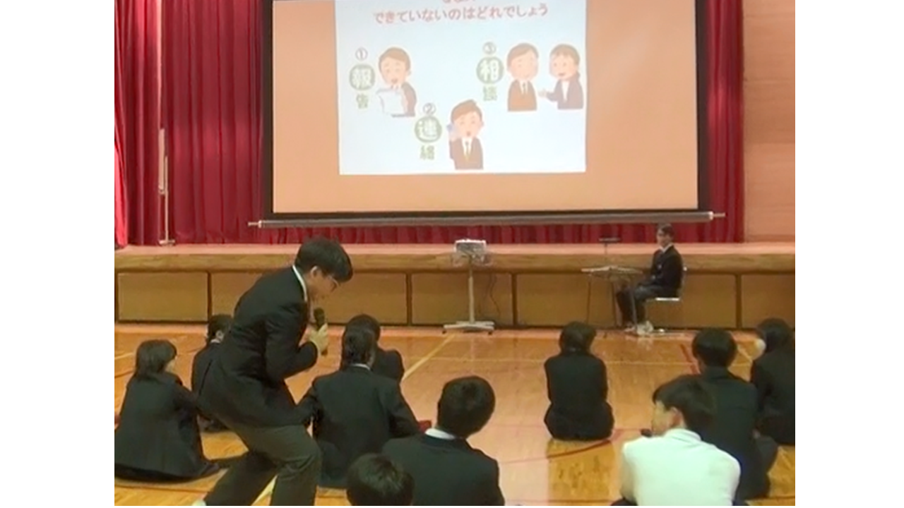 テーマは同じ「職場体験」で講習内容のポイントも同じなのですが、事例や場面設定などは各班ごとに工夫を凝らして全く違った展開になっており、生徒たちの個性が発揮されています。