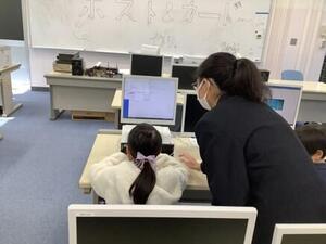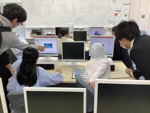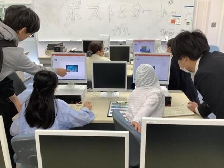 これは「木津高水族館」と専門学科の共催で、来られたお客様をおもてなしする企画として3年生の課題研究の一環で取り組んだものです。情報企画科らしく、パソコンを活用したコンテンツ作りに知恵を絞り、小さいお子様にも楽しんでもらえるものとして工夫を凝らしました。