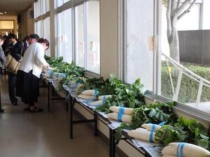 小ぶりなダイコンに育てるため、10月半ばに種を蒔き育ててきました。12月末、出荷のための収穫調整実習を行いました。