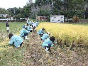 Ⅰ年生が手植えを行った水稲も「手刈り」 により収穫。温室内で乾燥中です。