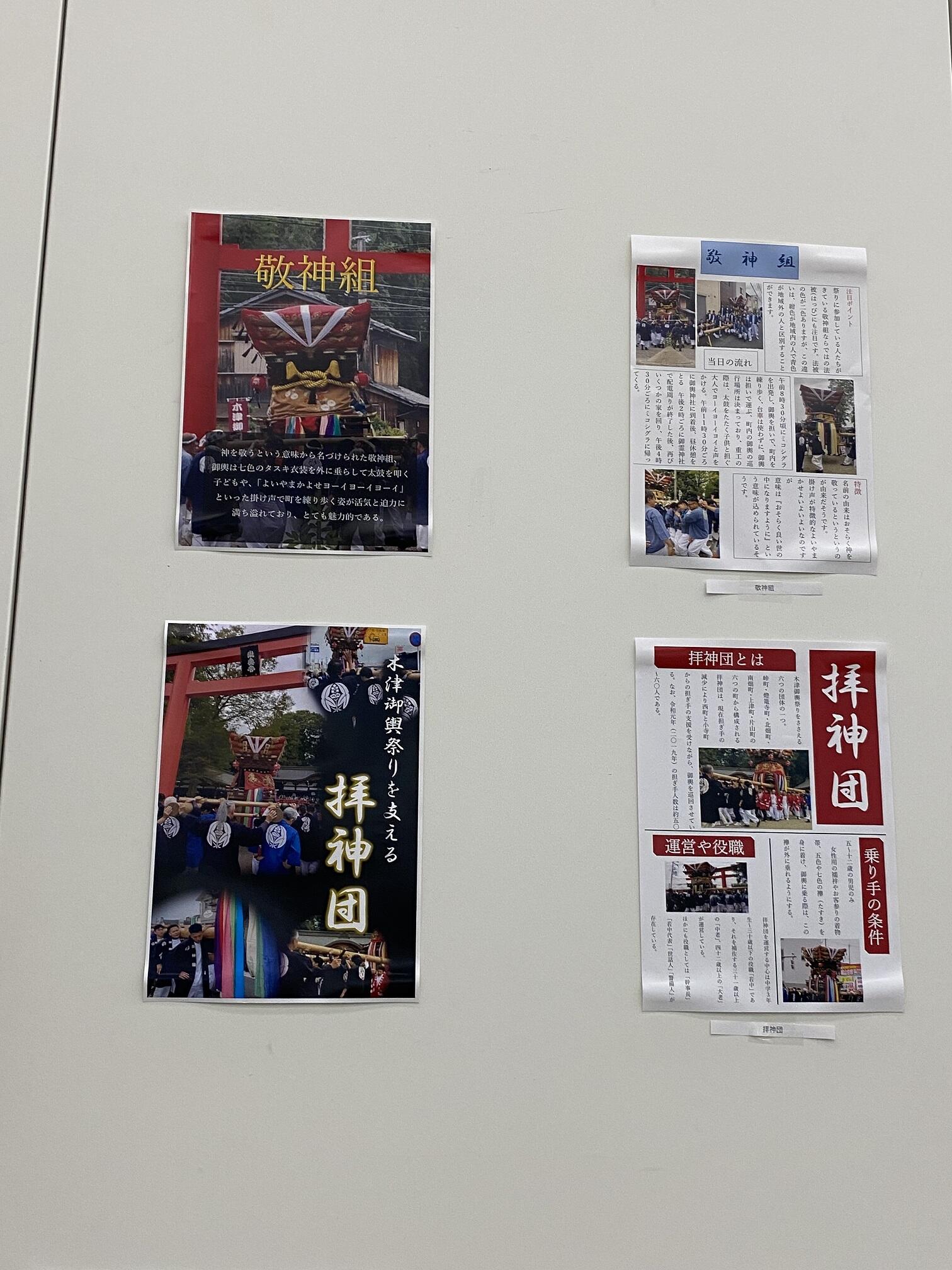今年度は各町ごとの御輿のPRにも力を入れ、通常のポスターだけでなく、それぞれの特徴や見所などを詳細に紹介した壁新聞も登場しました。地域の方々に広く見ていただき、お祭りの雰囲気を盛り上げる一助になっています。