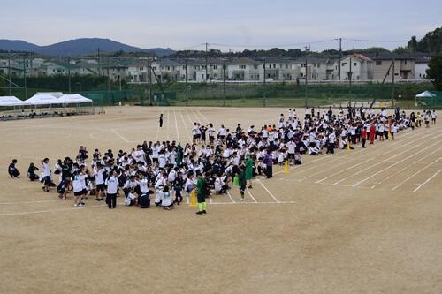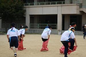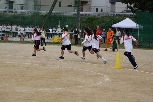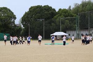 午前の部では、50m走・80m走・障害物競走・借り物競走・台風の目・大縄跳び・クラス対抗リレー(予選)を行い、午後の部では、部活動対抗リレー・10人11脚・ムカデ競走・玉入れ・綱引き・クラス対抗リレー(決勝)・ブロック対抗リレーが実施されました。